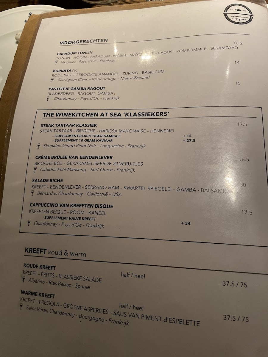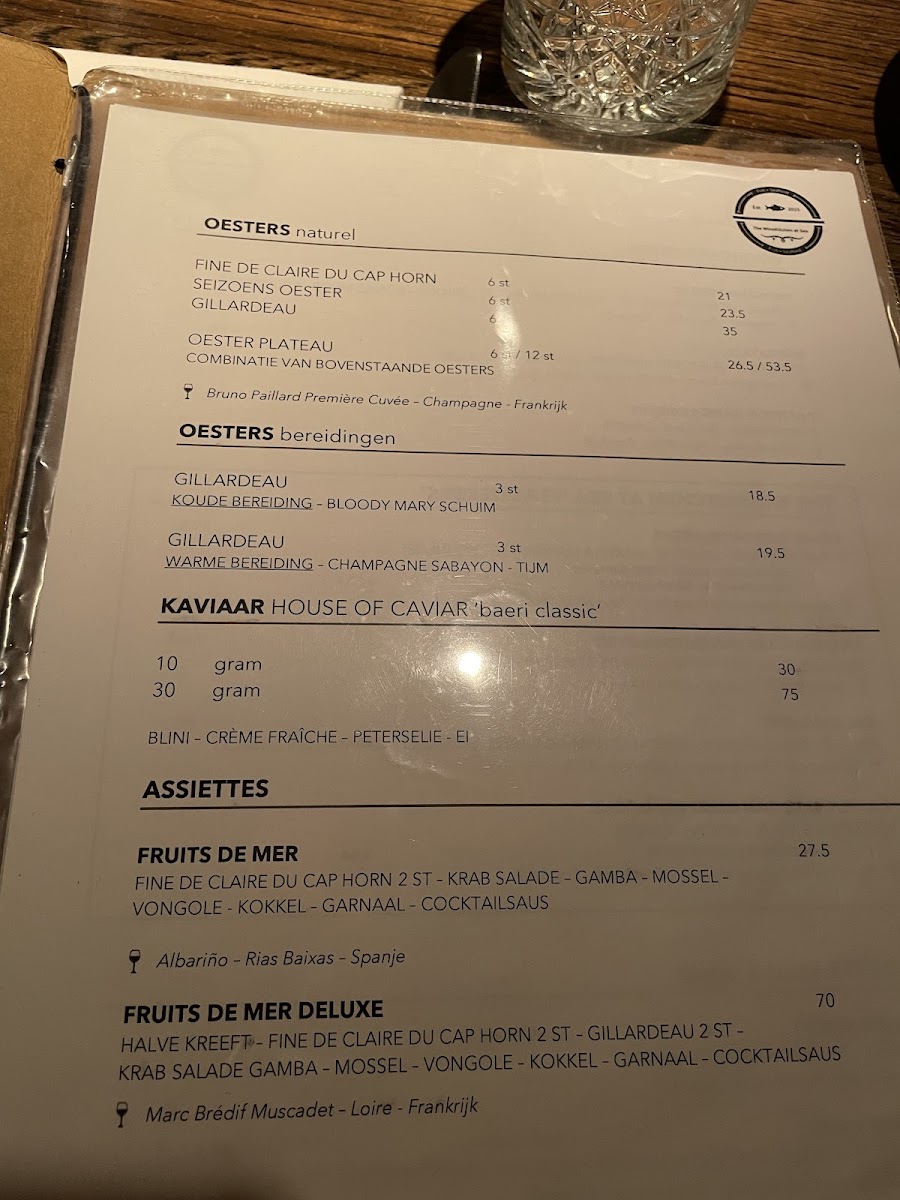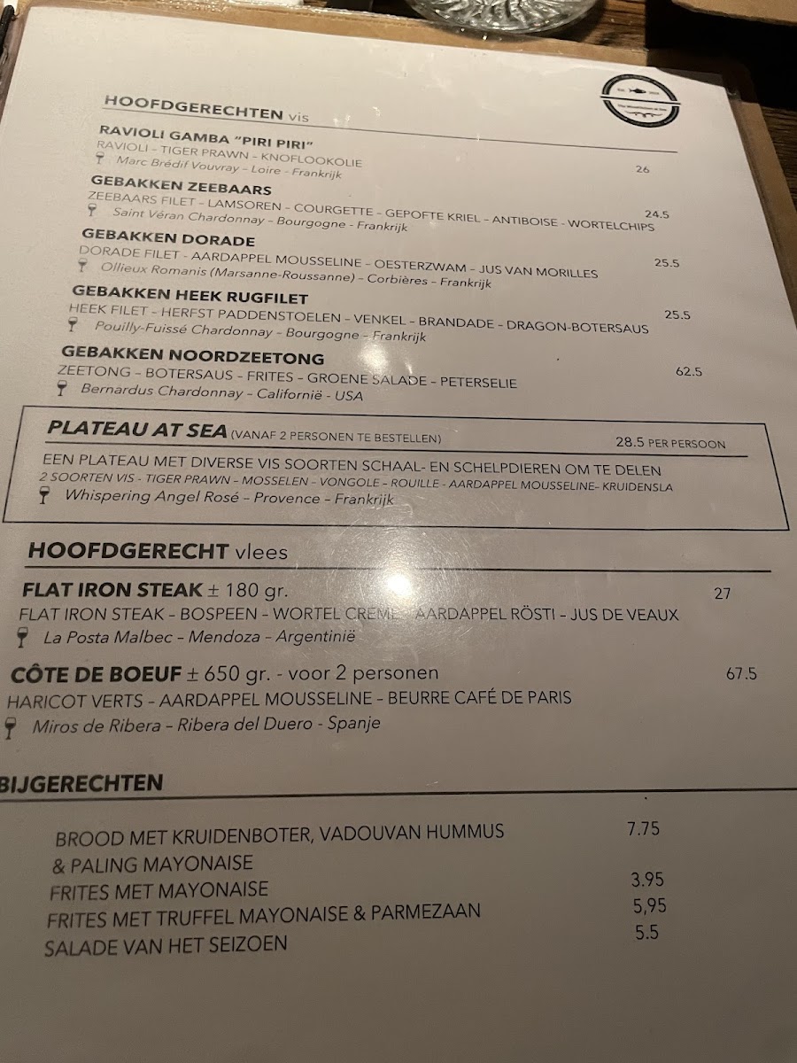 The menu at The Winekitchen in Amstelveen offers a delightful array of dishes that showcase fresh ingredients and refined flavors. For seafood lovers, the Oyster Selection stands out as a perfect starter, offering a variety of oysters that are expertly prepared to highlight their natural sweetness. The Mussels with Saffron bring a rich and aromatic experience, with the saffron-infused broth elevating the delicate mussels. The Scallops with Soft Shell Crab is a showstopper, combining the tender scallops with the crispy texture of soft shell crab for a satisfying contrast. For a heartier option, the Zalm provides a beautifully cooked salmon that pairs wonderfully with the side accompaniments. The restaurant also serves a luxurious Fruit De Mer, an indulgent platter featuring an impressive selection of shellfish and crustaceans. The Fisherman's Platter is another must-try, offering a generous assortment of seafood that's perfect for sharing. To conclude the meal on a sweet note, the Merengue with Fruit is a light and refreshing dessert that pairs perfectly with a glass of wine. Whether you're in the mood for seafood or something light, The Winekitchen delivers a memorable dining experience with dishes that are both flavorful and expertly crafted.